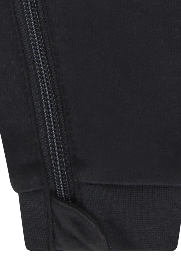 Keep little athletes cozy with this onesie, made of soft cotton/poly baby French terry that feels gentle on baby's sensitive skin. The hood provides optional extra warmth, and the full-zip closure makes it easy to change, dress, or layer over a bodysuit.