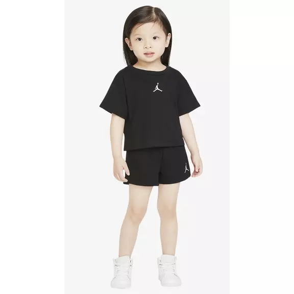 This set includes wardrobe essentials with a simple design and a timeless Jumpman style designed for movement. The knit t-shirt has a tagless crew neck for a simple feel and the matching French Terry shorts have an elastic waistband for a comfortable fit. Plus, both pieces can be mixed and matched with other pieces already in your child's closet.