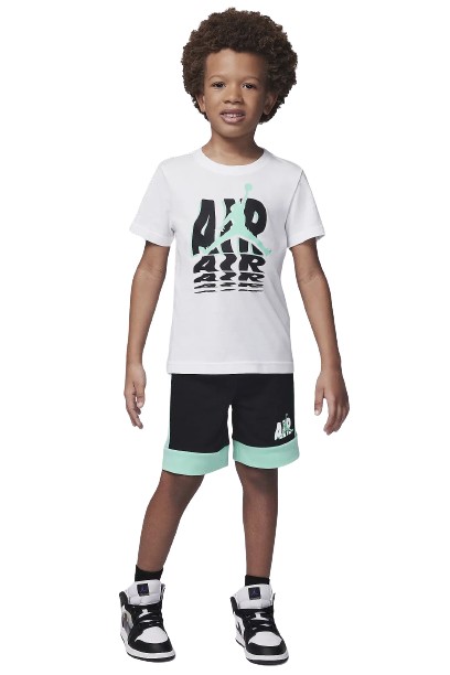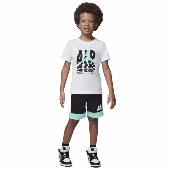 Jordan Kids JDB Jumpman Wrap Logo Tee and Short Set "Black-Light Dew"
