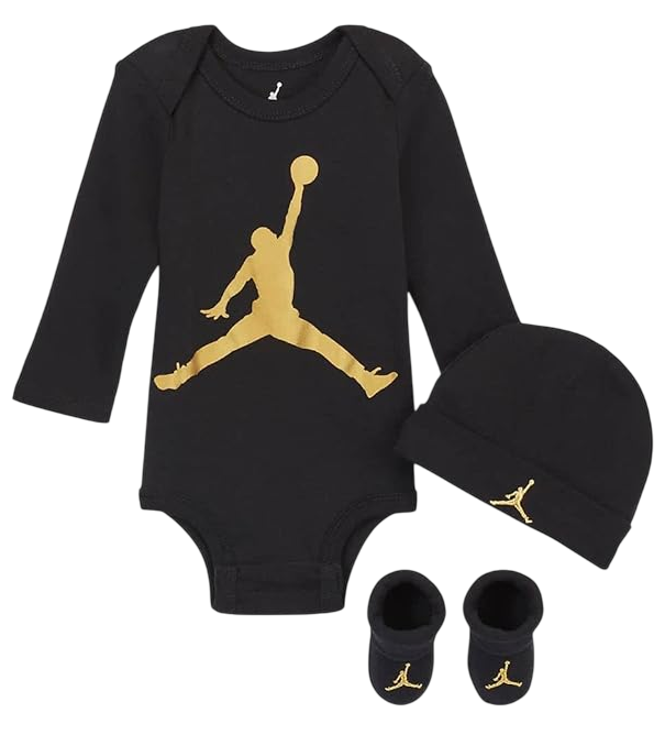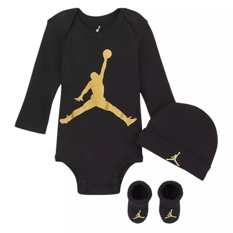 Jordan JHN Jumpman Infants Hat/Bodysuit long sleeve/Bootie Set 3pc "Black Gold"