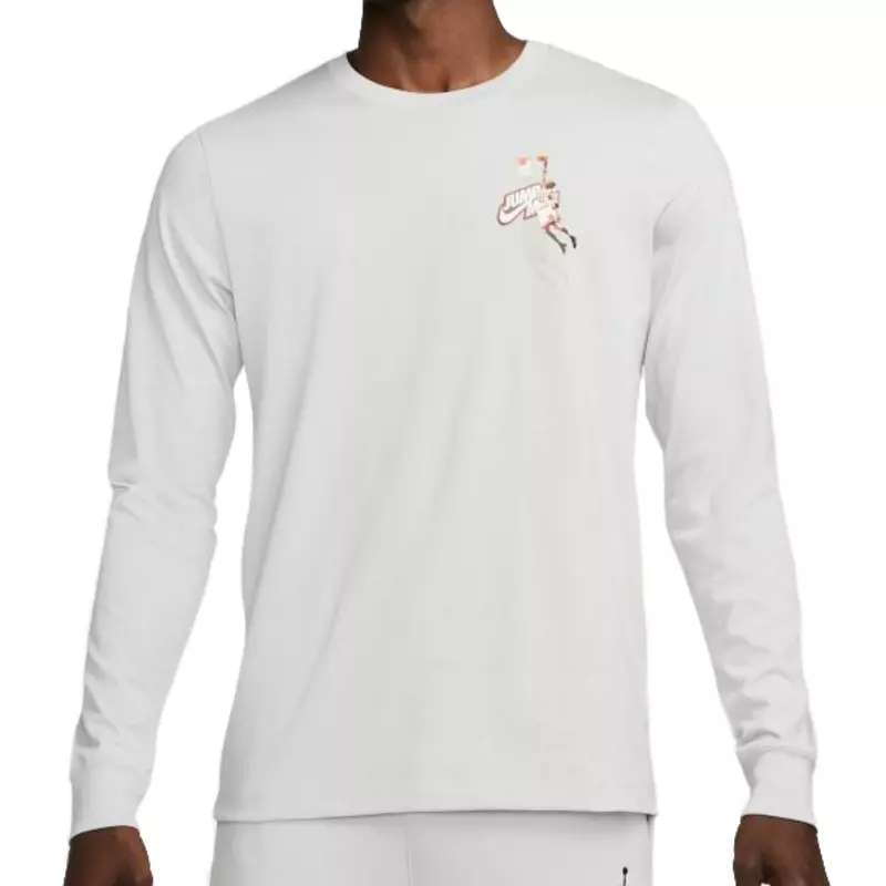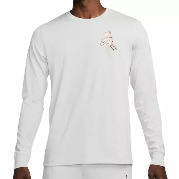 Made from soft, comfortable cotton, the Jordan Jumpman Long Sleeve T-Shirt features a relaxed, loose fit. The prints on the front and back combine a printed text with a photorealistic image of Michael Jordan in the fourth game of the 1998 championship.