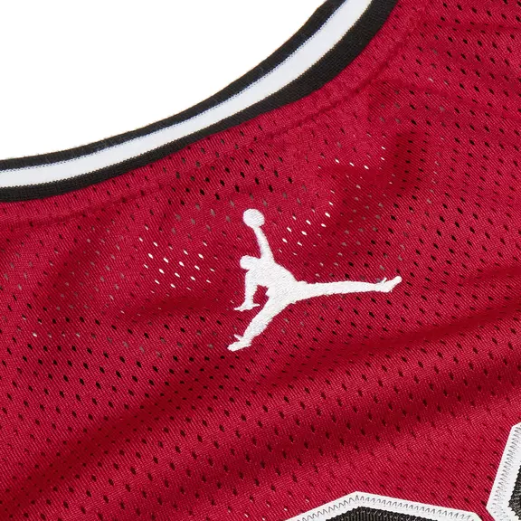 The Jordan 23 Jersey for boys and girls is made with '90s materials and finishes for authentic style. Wide knit mesh, ribbed neckline, appliquéd name and number, and Michael Jordan-inspired embroidered details make this jersey perfect for basketball and recreational use.