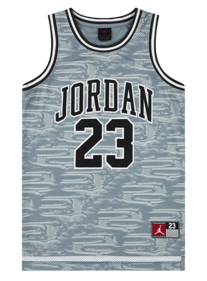 The Jordan Kids JDB Printed Jersey Tank Top "Aviator Grey" is more than just a piece of clothing; it's an expression of active lifestyle and modern fashion. Perfect for sports, leisure, or casual outings, its versatile style makes it a favorite among kids and parents alike. Enhance your child's wardrobe with this stylish piece that combines functionality with an urban edge.