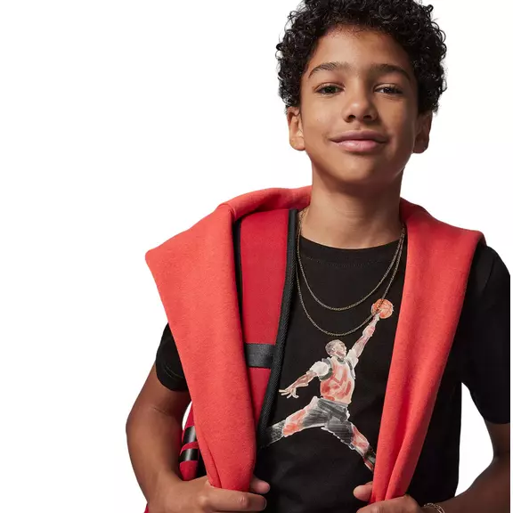 Michael Jordan's athletic art is featured on this classic cotton/polyester jersey t-shirt. It has a regular fit that allows you to move freely and the tagless crew neck provides a comfortable wear.