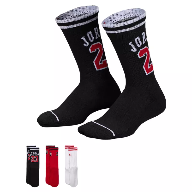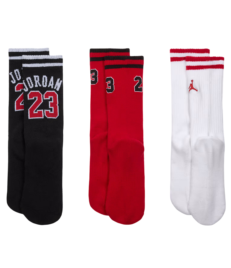 Whether for sports activities, casual outings, or simply lounging at home, the Jordan Kids Crew Socks are the perfect addition to any child's wardrobe. The classic color palette ensures they match effortlessly with a variety of outfits, making them a staple for everyday wear. Embrace both classic style and high performance with these exceptional socks.