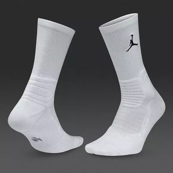 The Jordan Ultimate Flight 2.0 Crew Basketball Socks are designed with zoned cushioning to help absorb impact on the court.