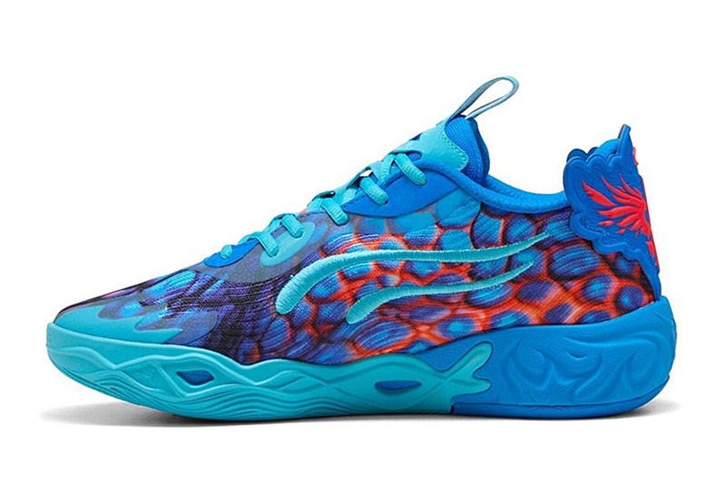 Aside from the innovative technology, the MB.04 Low Junior "Alien Skins" stands out for its stylistic influences, channeling the essence of LaMelo Ball with a new tongue and heel design. The latter not only incorporates LaMelo's shape but also the iconic phoenix wing logo, cementing an unbreakable connection between the athlete and his creation.