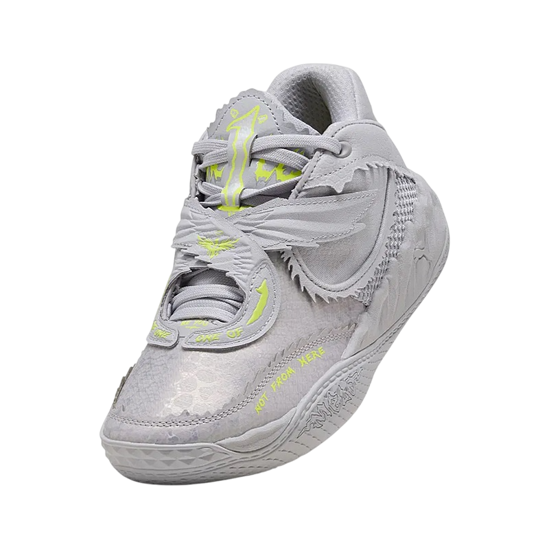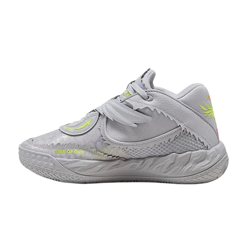 The PUMA MB.05 continues its tradition of innovation and style, fusing sportswear with current pop elements. The visual elements blend seamlessly with athletic features, delivering the performance expected by athletes and fashion enthusiasts alike. The LaMelo Ball MB.05 Junior "Shine" is designed not just for playing, but for making a statement, as every detail is carefully crafted to achieve a balance between functionality and cutting-edge style.