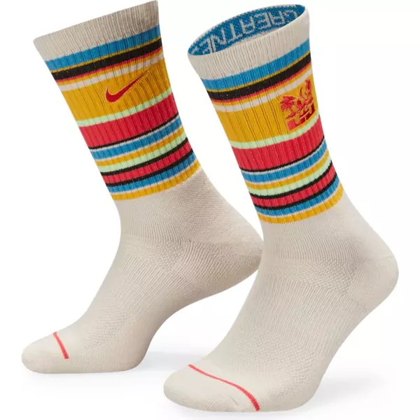 Walk in LeBron's footsteps in the LeBron Everyday Crew Socks. They hook to LeBron's seasonal apparel line, with colorful stripes inspired by sunny Southern California. Stretchy, sweat-wicking yarns feel soft and comfortable, and the ribbed leg and midfoot arch help them fit snugly.