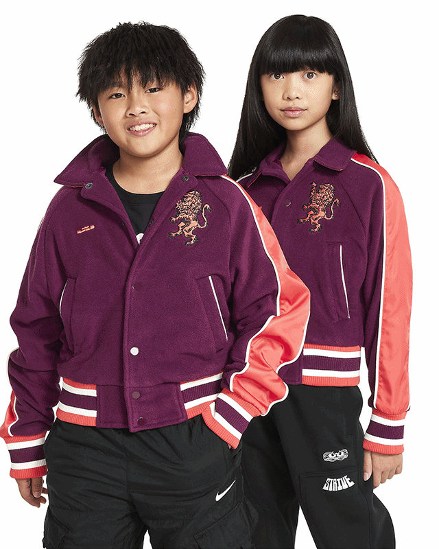 LeBron James is considered one of the best players for a reason. LeBron has been dominating the court for almost two decades and winning everything from MVP recognition to championships. He pays tribute to one of the greatest players with an oversized sports jacket inspired by the cities in which he has played this star. Pair it with the LeBron track pants for the look worthy of an All-Star.
