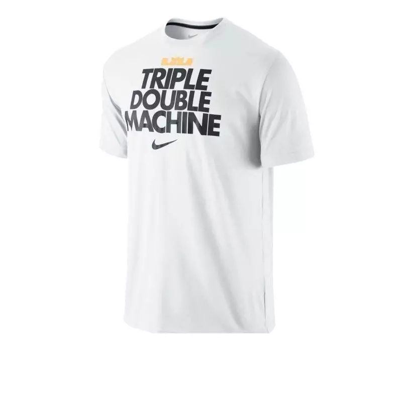 The LeBron "Triple Double Machine" Men's T-Shirt is made with a sweat-wicking cotton blend to help keep you dry and comfortable. A bold screen print honours the statistical supremacy of a hoops superstar.