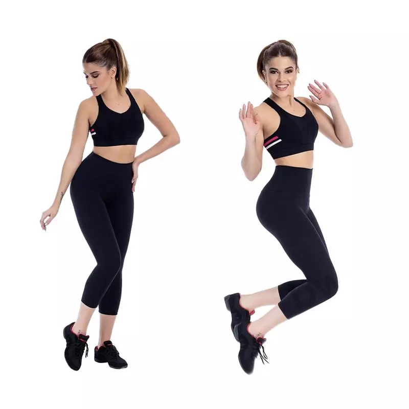 Tight mid-calf length corsair mesh, with a double wide band of compression fabric that covers the lower abdomen, visibly reducing size and producing a flat stomach effect.