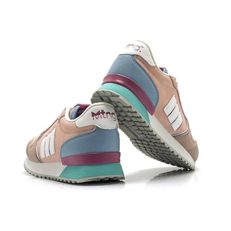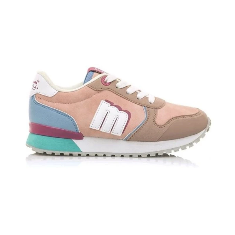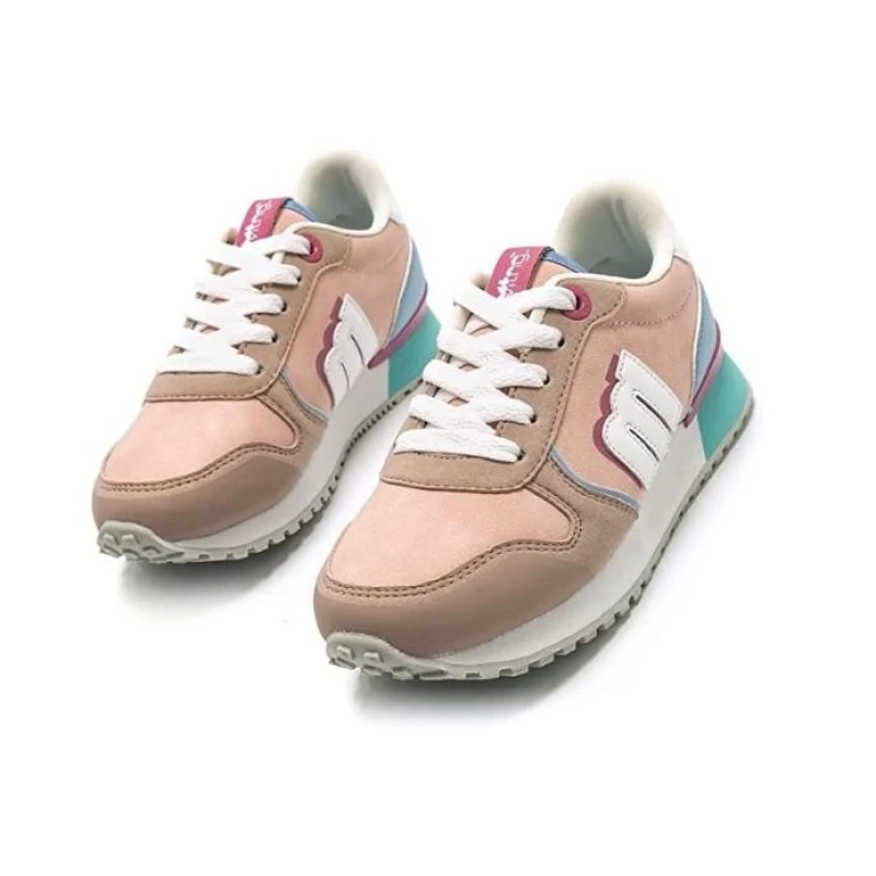 Joggo girl's pink sneakers, combined in different shades of pastel colors, highlighting the combination in pink and blue tones as the back and the outline of the brand's logo. It has a flat lace-up closure and a two-tone sole with a slightly raised toecap to improve footsteps with a foam sole and heel stabilizer for greater stability on foot. Give a different touch to your comfy looks with Mustang.