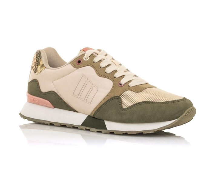 Sneakers in white pink color combined in gray and brown tones with snake print detail on the heel. White rubber sole ideal to be comfortable and light with flat lace closure with combined panels in different textures. Ideal MTNG for your seasonal looks.