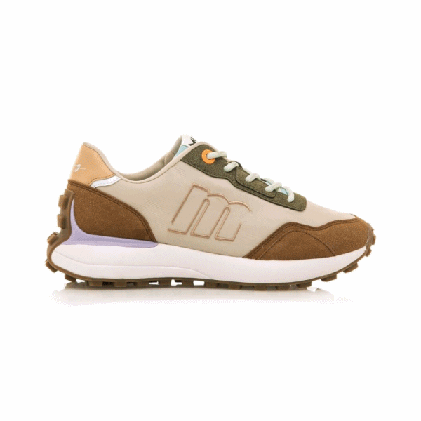 Zinc Mustang sports shoe for girls, inspired by the classic white sports shoe. It has different panels of pink, khaki and blue colors. Its geometric-shaped sole goes up to the back of the sports car. Slightly raised sole providing a more stable footprint. Colorful and original. They will become your new favorite sneakers!