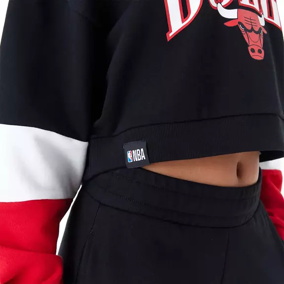 New Era NBA Chicago Bulls Womens Colour Block Crop Crew Neck Sweatshirt