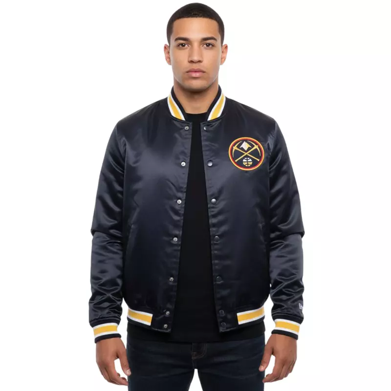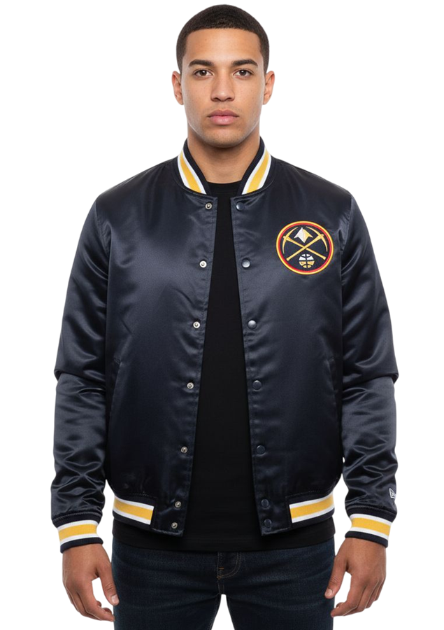 Step up your game with the New Era NBA Denver Nuggets Embroidered Logo Bomber Jacket "Navy". Crafted with precision, this jacket is an essential wardrobe addition for every Denver Nuggets fan. The bold navy color provides a sleek, modern look suitable for various occasions.