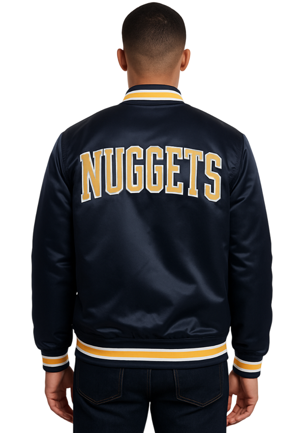 An embodiment of fan pride and fashion, the New Era NBA Denver Nuggets Bomber Jacket offers more than just looks. It's a testament to quality craftsmanship and a great way to showcase your team spirit. Suitable for various weather conditions, it provides a snug yet stylish fit, making it a versatile piece in anyone's wardrobe.