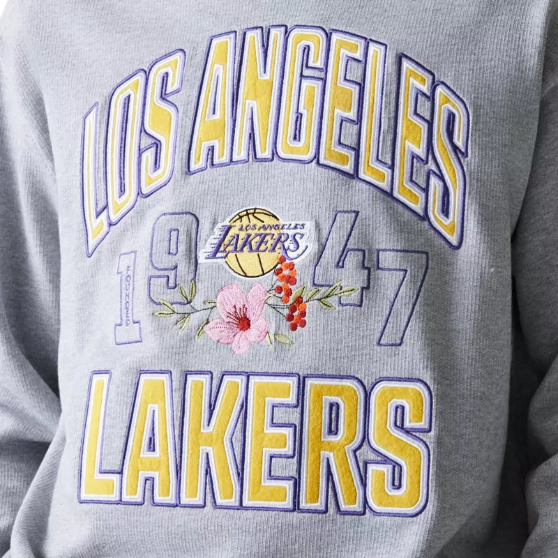 The New Era NBA LA Lakers Floral Oversized Crew Neck Sweater is designed with both the basketball enthusiast and the fashion-forward individual in mind.