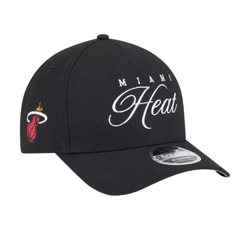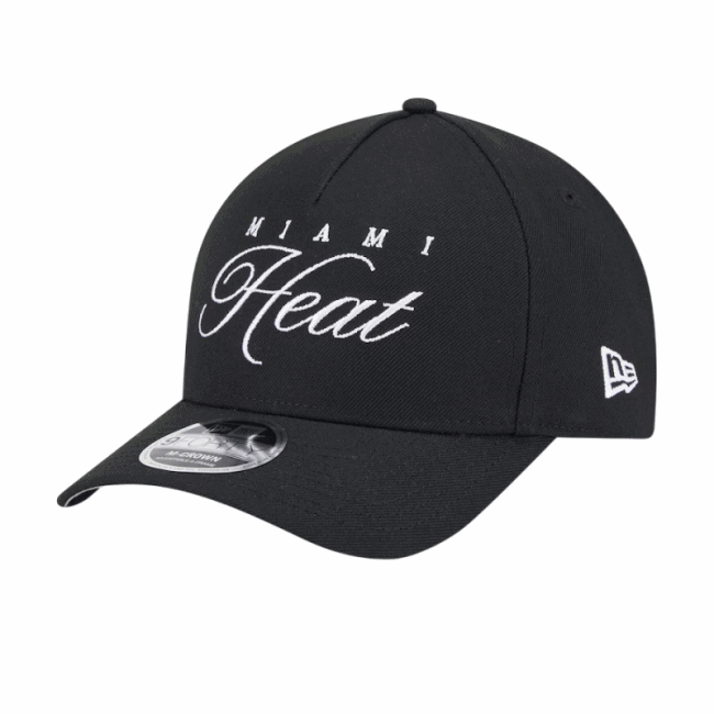 This curved New Era 9FORTY M-Crown A-Frame Miami Heat cap from the 2025 NBA Draft collection features the Heat name embroidered on the front panels, the team logo on the right side, the NBA logo on the reverse, and the New Era flag embroidered on the left side. Buy it now.