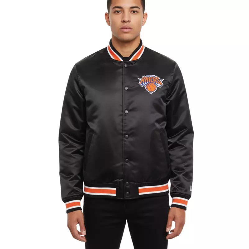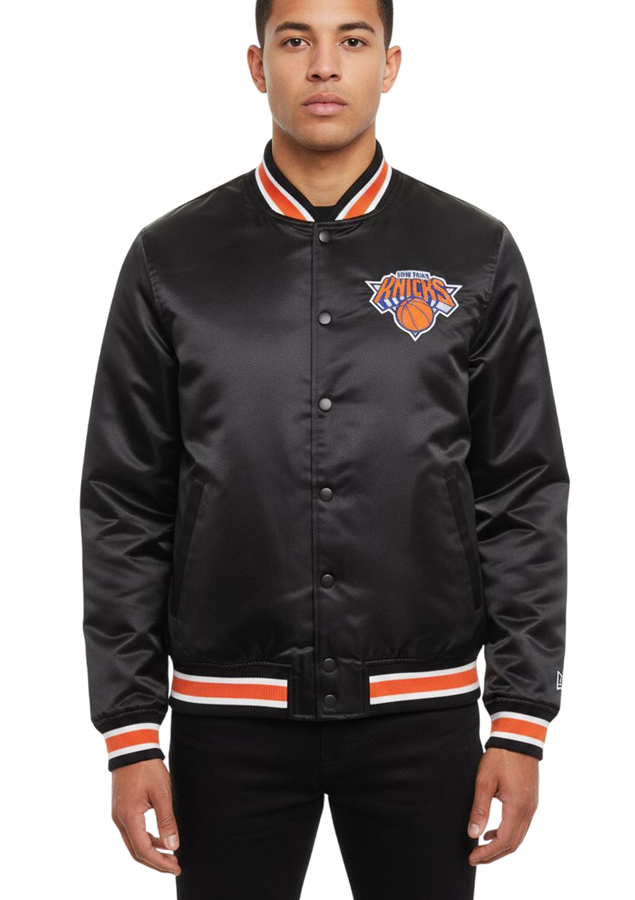 Wear it to the game to show your support or pair it with casual streetwear for a chic everyday look. The New Era NBA New York Knicks Embroidered Logo Bomber Jacket is more than sportswear; it's a fashion statement for modern trendsetters. Step into a realm where sports heritage meets contemporary style. This jacket is a must-have for those who want to embrace their fandom with a modern twist.