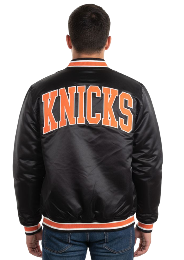 Discover urban, sporty style with the New Era New York Knicks Embroidered Logo Bomber Jacket. Designed for die-hard Knicks fans and fashion lovers, this jacket fuses athletic pride with contemporary aesthetics.