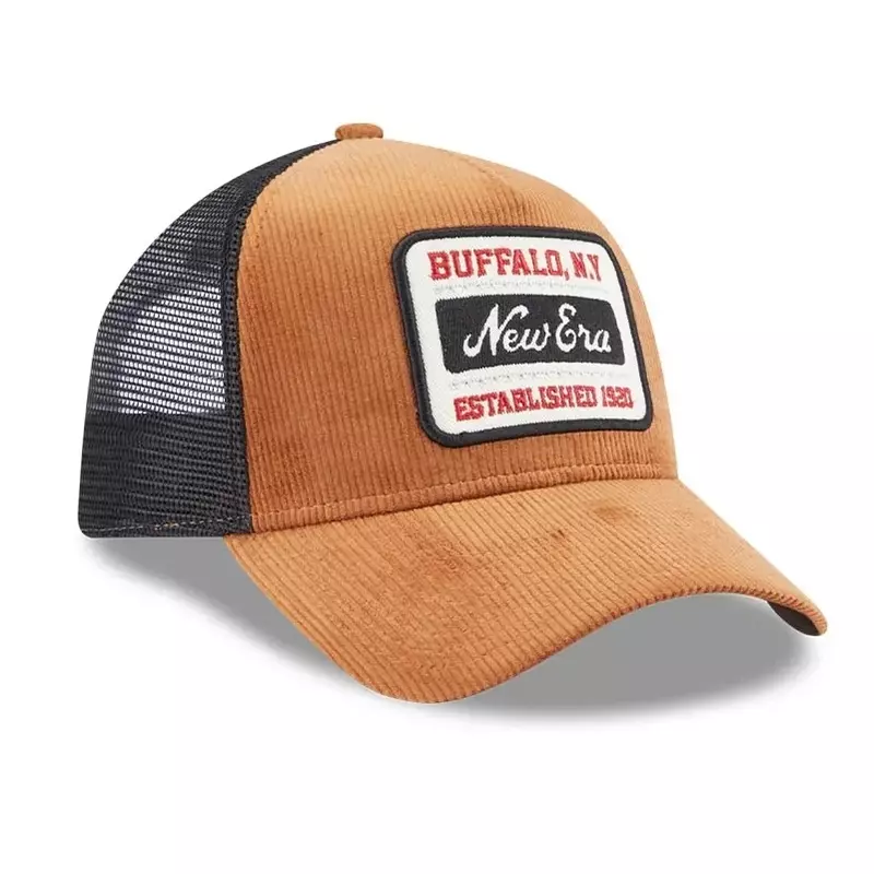 Enjoy classic style with a retro feel, Trucker by picking up the official New Era Fabric Patch 9FORTY A-Frame Trucker Cap. Finished in a deep brown colorway, the contoured A-frame crown features fabric panels to the front and mesh panels to the middle and back, ensuring a cool, breezy feel, yet are protected from direct sunlight. . A New Era patch is placed to the front of the design, with an embroidered New Era flag to the left. A curved visor works to keep you cool, while the snapback closure allows you to quickly and easily alter the fit.