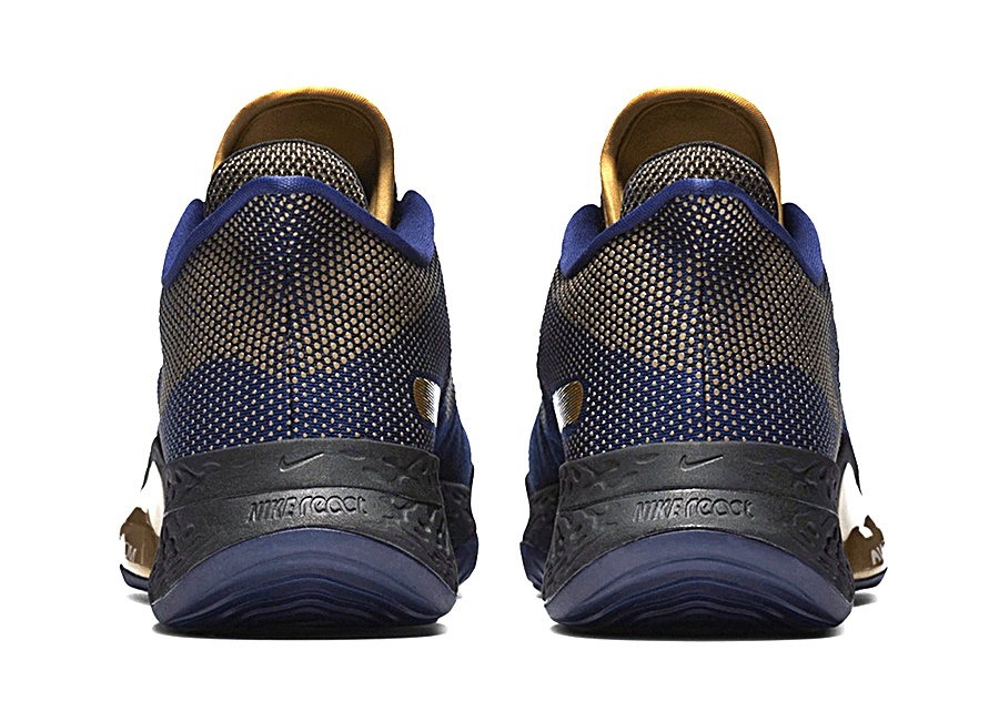 Profile swooshes and tongue accents follow suit in gold, with the latter making the most luxurious statement. Underfoot, the triple-stacked React foam deviates from the pair's two-tone color scheme in its black composition, but complements the palette for the New Orleans Pelicans.