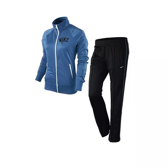 Agasalho esportivo para mulheres de esportes, e também para uso de lazer, jaqueta-zip completo. no peito esquerdo bordado Nike logotipo branco e Nike registro .. As calças têm dois bolsos laterais e na parte superior do treino de borracha.