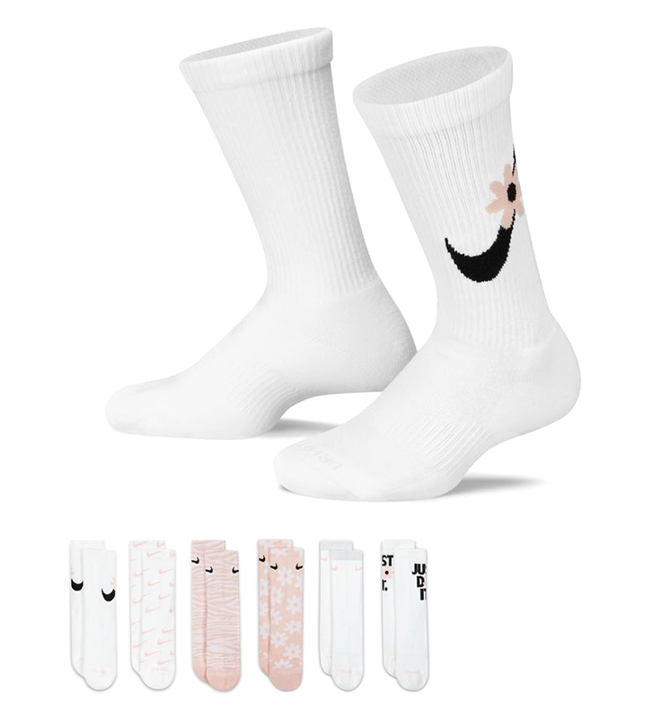The Nike Everyday Plus Socks bring style, fun and positivity. This six-pair set is designed for all-day play thanks to Dri-FIT technology. From its colorful styling to the flower and zebra prints, it's a sure bet.