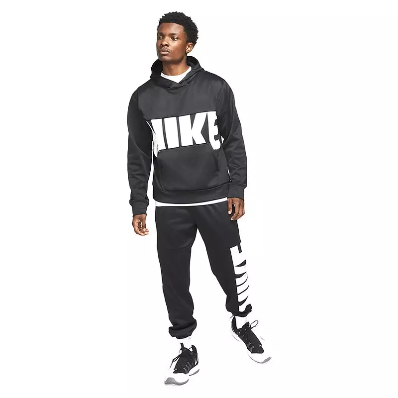 The Nike Therma-FIT Basketball Hoodie combines the ease of wear and warmth of high-performance fleece with a premium cut and sewn design. Roomy and baggy, it features the large cut-out and sewn-on "NIKE" letters on the front.