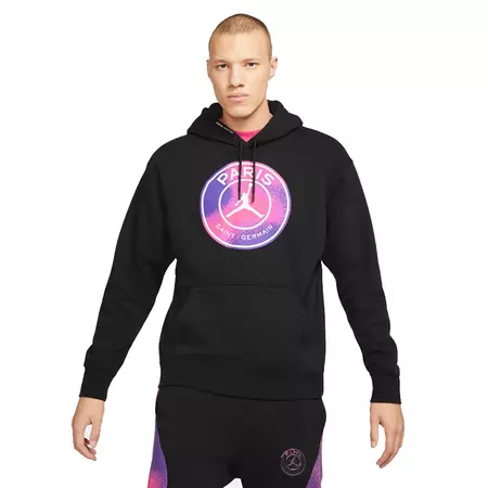 This hoodie represents the Jordan brand and the mighty French football club Paris Saint-Germain. Features a shiny iridescent label and oversized Paris Jumpman crest. The colors are inspired by the team's 4th kit.
