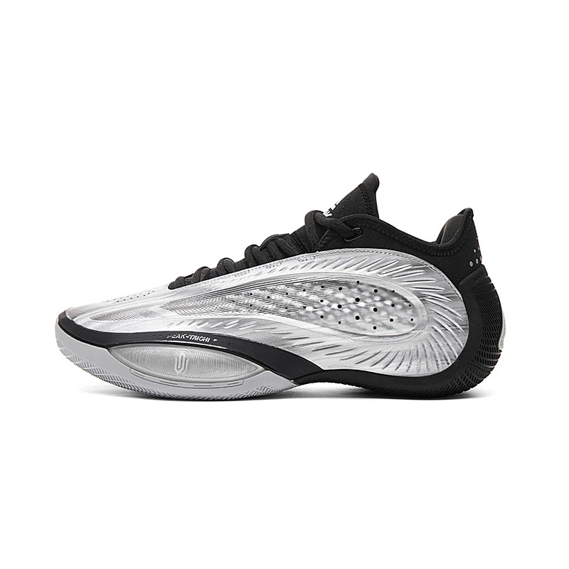 The Peak Andrew Wiggins Talent 3 "Silver Black" basketball shoes are specially designed for dynamic players seeking maximum stability, protection, and responsiveness in every game. The lightweight, waterproof, and seamless one-piece foam upper offers unparalleled flexibility and durability, ensuring optimal support. The heel overlay, along with the cushioning, provides a secure and comfortable feel by gently wrapping the foot.