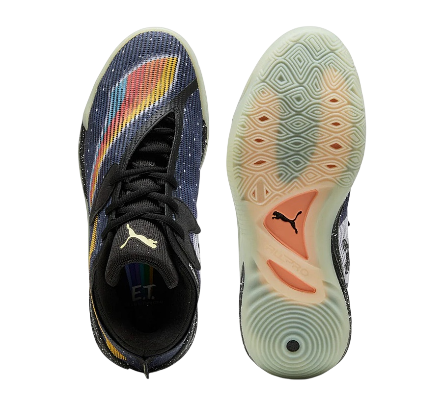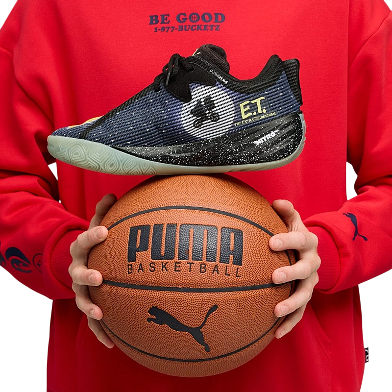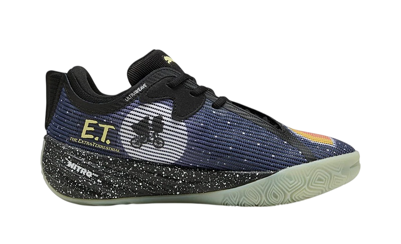 The PUMA All-Pro NITRO™ 2 "E.T." is an extraordinary collaboration between PUMA and the iconic extraterrestrial from the movie E.T. These basketball shoes not only deliver exceptional performance but also infuse a strong dose of 80s nostalgia. Inspired by the E.T. universe, they have been designed with themed graphics and evocative colors that highlight the story of friendship and adventure that characterizes this character.