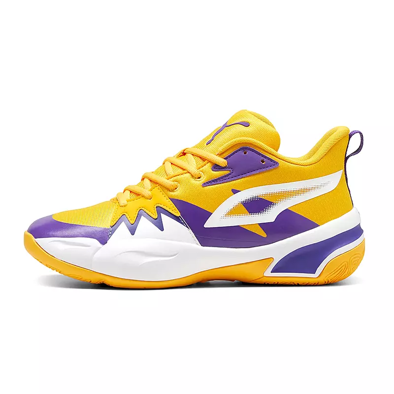 A inclusão de materiais avançados nos "Lakers" da Puma Basketball Genetics é realçada pela sua malha cuidadosamente desenhada. Esta abordagem não só proporciona suporte e estabilidade, como também garante durabilidade em utilização contínua, essencial para os atletas que exigem ao máximo o seu calçado desportivo.