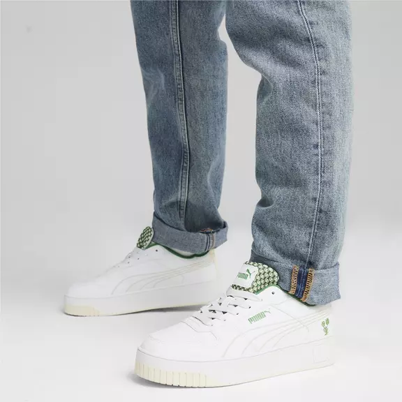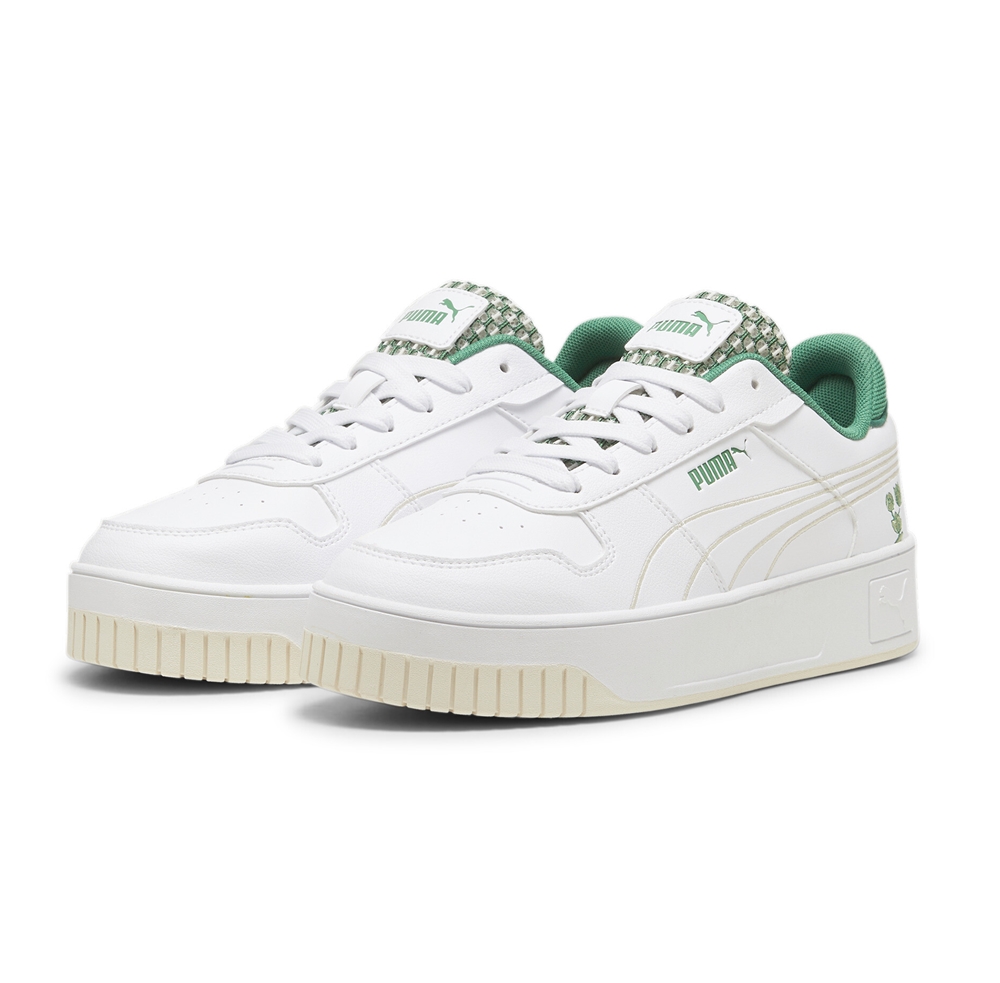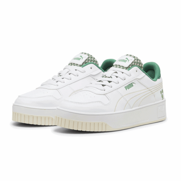 The Carina Street has a streetwear-inspired design combined with an authentic platform profile, making it the perfect choice for your everyday outfits. The full leather upper has toe overlays and a basketball touch. They are enhanced with a perforated upper. The highlight of the shoe is the new cupsole base, now with a slightly higher platform with an interesting texture in the toe and heel area. In the Blossom Pack, modern styles feature sophisticated floral prints, other material details and feminine PUMA typography.