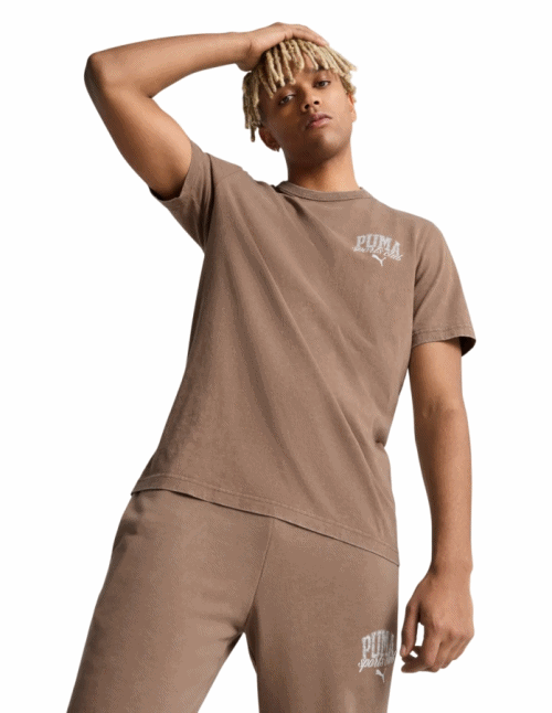 Discover the superior comfort and unparalleled style of the PUMA CLASS Washed Tee "Totally Taupe" and elevate your wardrobe with a piece that celebrates the duality of contemporary and classic design.