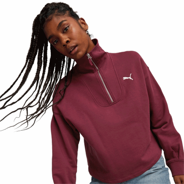 We've updated our classic HER loose fit sweatshirt. The wide silhouette, half-zip closure and subtle embroidered logo make it an easy and comfortable addition to your wardrobe.