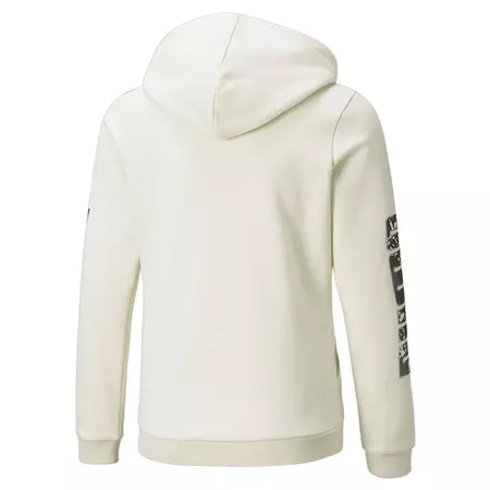 A strong style for the streetwear fanatic: this daring hoodie features eye-catching double branding on the sleeves, with a combination of a graphic print and a shimmering metallic effect. An extra bold PUMA Cat logo at the neckline adds the finishing touch to this design, and a cozy jersey-lined hood, ribbed trim and a super-soft cotton blend from Forever Better Initiative make this garment as comfortable as possible. .