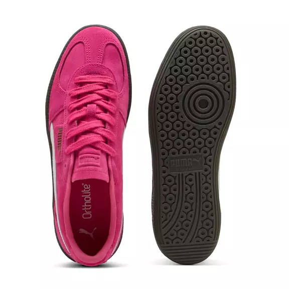 The Puma Palermo "Pink" boasts a vibrant pink color that immediately grabs attention. This bold hue is not just a fashion statement, but also adds a youthful and vibrant energy to your wardrobe. Perfect for those who want to add a splash of color to their daily outfit while staying at the forefront of modern style.