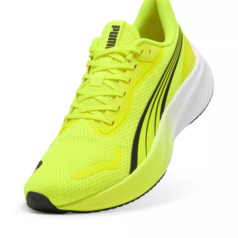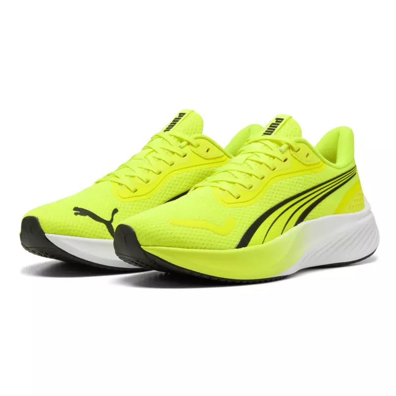 The Puma Pounce Lite "Yellow Alert" shoes offer a perfect blend of style and performance for the modern athlete. Designed to cater to both casual wearers and professional runners, these shoes stand out with their vibrant 'Yellow Alert' color, ensuring you capture attention wherever you go.