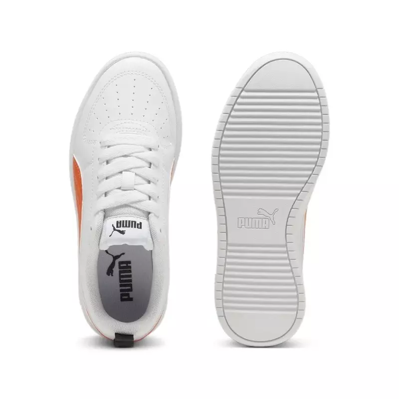 The Puma Rickie sneakers represent a timeless yet modern and minimalist look. The upper stays true to PUMA DNA with synthetic leather, strap-shaped branding on the sides and perforation details on the vamp area. A webbing detail on the heel that includes a pull tab will make putting it on easy and comfortable. The design offers a clean look with the PUMA logo on the side of the sole.