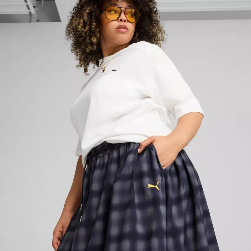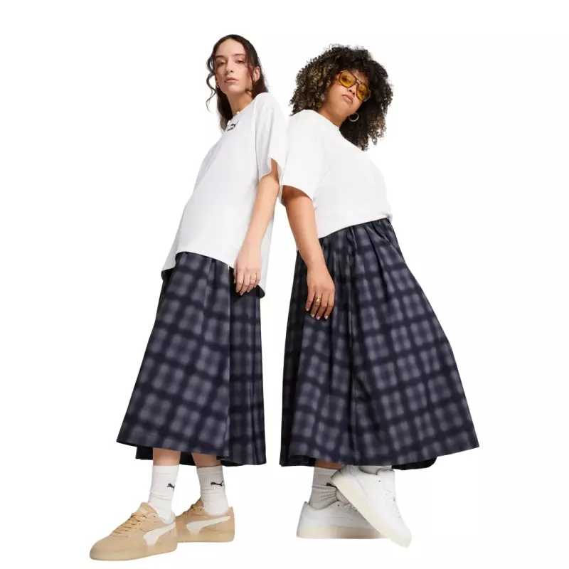 Puma's ROAD TO UNITY collection is inspired by global unity and cultural diversity, symbolizing connection through fashion. The "Navy" pleated skirt is not only a fashion piece but also a representation of this essence, designed for all women who wish to express their individuality without sacrificing comfort and style.