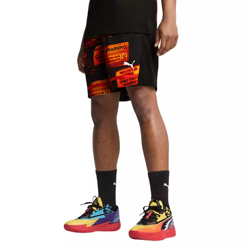 Discover the Puma Scoot Caution All Jaws Shorts "Black-AOP," an essential piece for anyone who values both style and functionality. Designed with the same dynamic spirit as the inspiring Scoot Henderson brand collaboration, these shorts are not only made for performance, but also to make a unique stylistic statement.