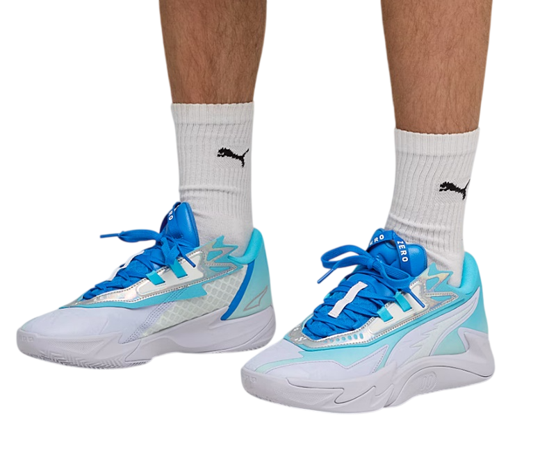 The Puma Scoot Zeros II Crystal "Bright Aqua" isn't just a shoe; it's a revolution in the world of basketball, designed for players who always want to be one step ahead. Inspired by the energy and passion of Scoot Henderson, these shoes capture the O.D.D. mantra: "Overly Determined to Dominate." With a bold design and vibrant colors that celebrate the NXT Pro Hoops, the Scoot Zeros II is made to stand out both on and off the court.