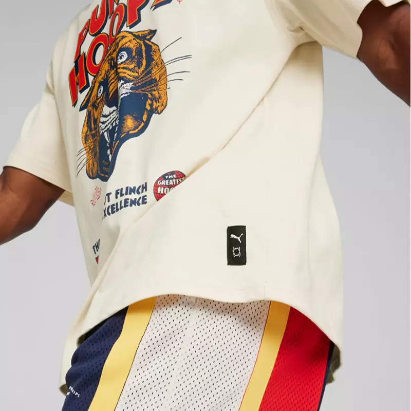The PUMA HOOPS Showtime T-shirt is more than a t-shirt, it's a statement of your passion for basketball. Whether you wear it on the court, in the stands or on the street, it will attract everyone's attention. Get ready to make a grand entrance and show your love for basketball. with style.