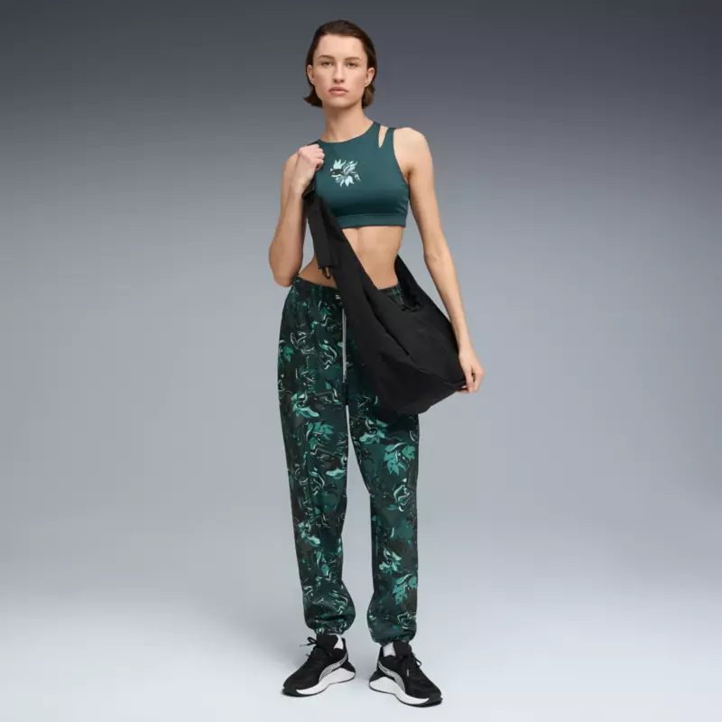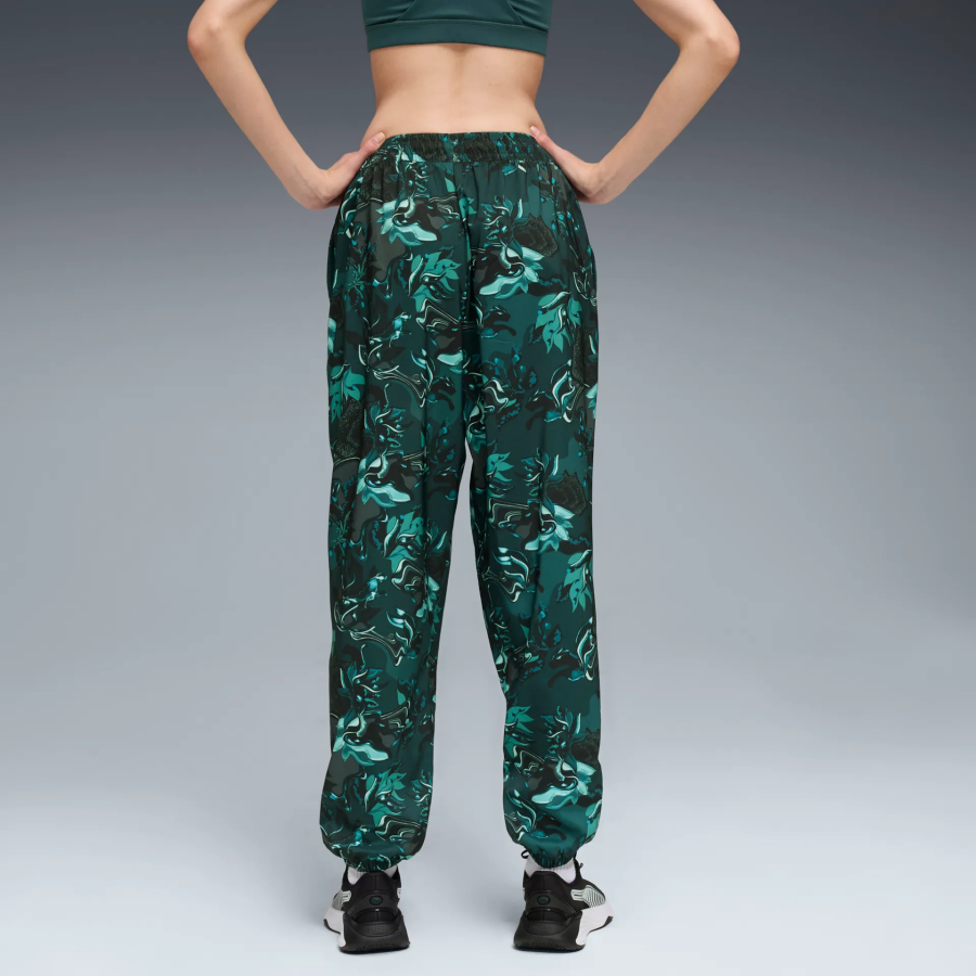 Step into style and comfort with the Puma W WOVEN JOGGER "Green Terrain". These jogger pants combine modern design with practical features, making them a must-have for anyone seeking both fashion and functionality. Made with lightweight woven fabric, these joggers offer a breathable experience, perfect for those on the go. The "Green Terrain" color offers a fresh, trendy look, suitable for diverse settings, from casual outings to relaxed work environments.