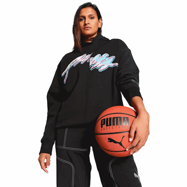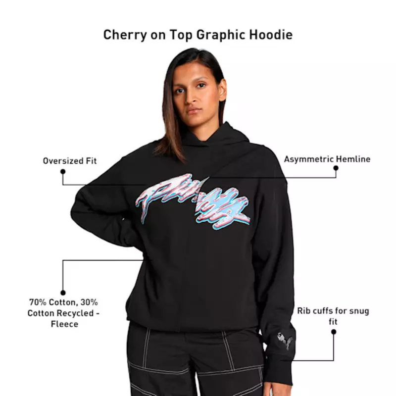 Puma Womans Basketaball Cherry on Top Graphic Oversized Hoodie "Black"