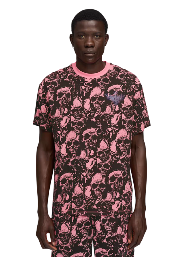 Melo doesn't play basketball, he makes the impossible possible. He plays like he's never been coached. Like he's in his own world. Pure instinct and flow. He's unmatched. Show off your unique personality with this t-shirt from his iconic line, featuring an all-over skull print.