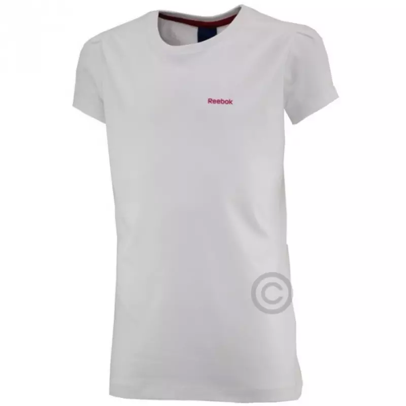 Camiseta manga corta para niña, cuello ribeteado y mangas, corte recto , Logo serigrafiado en pecho.
